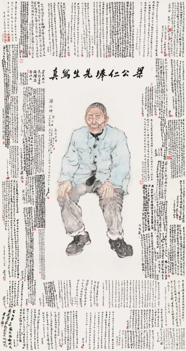 从现象学的角度看“写生”,写生是对“真实“和“存在”的一种捕捉,因此在这过程中,作为画家的 “我”,面对对象,如何寻找“真实”,是写生过程中自始至终的存在之问,尤其是人物写生。在现场,渼陂人追问像不像?这是谁?在雷子人这里,这个现场是谁的现场?写生与采风是手段还是目的?都构成了雷子人全部艺术行为,通过写生揭示作者对“渼陂“这个中国乡土社会的真实,是雷子人的史诗式的希冀,这一点,从他的根据写生展开的创作作品,以及将某次人像写生,通过村民题跋的形式,可以看出。