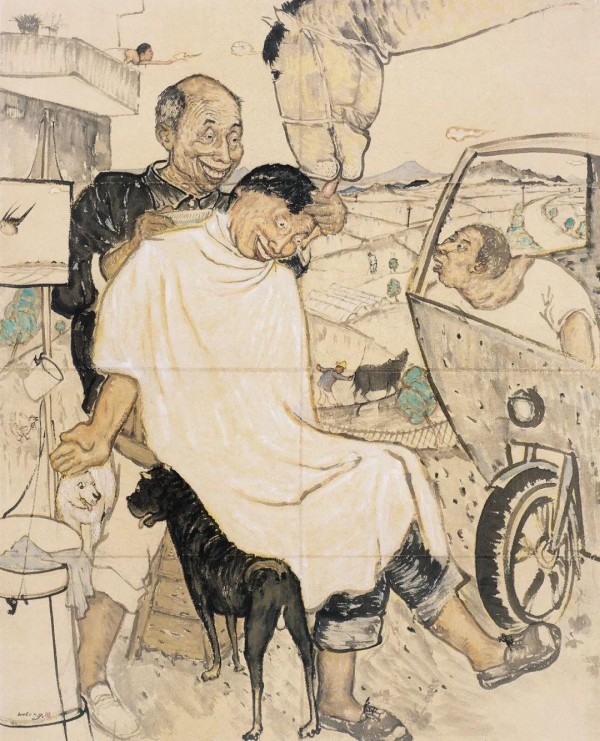 理发、归墟,是雷子人综合创作的两类题材,将日常观察凝聚在“理发师“和”归墟“,意味深长。画家陈逸飞曾经不遗余力筹拍电影《理发师》,在乡村,理发师的身份特殊,他类似于西方戏剧中的”丑角“,串联起各色人物,是日常叙事的中心,也是讲述者;雷子人曾用文字记录了渼陂的3个理发师,他们锋利的剃刀在头皮划过的感觉,冰冷的金属和温暖的肉身在理发这件事中惊心动魄。而”归墟“,则是一个区域社会巨大的交换场,价格、人情、土特产…所有的能量,都在这里四散而又千丝万缕关联。雷子人的创作以高度的完整性和象征性,通过琐碎的细节展现了中国乡土生活的日常精神。