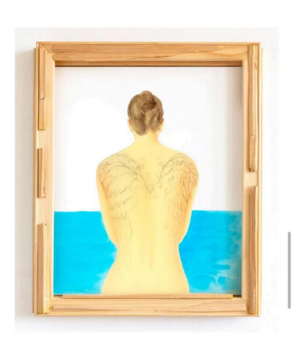 Oil and medium acrylic on canvas, two frames and wooden strips – 65 x 55 x 7 cm,(painting 2016, frame 2022)